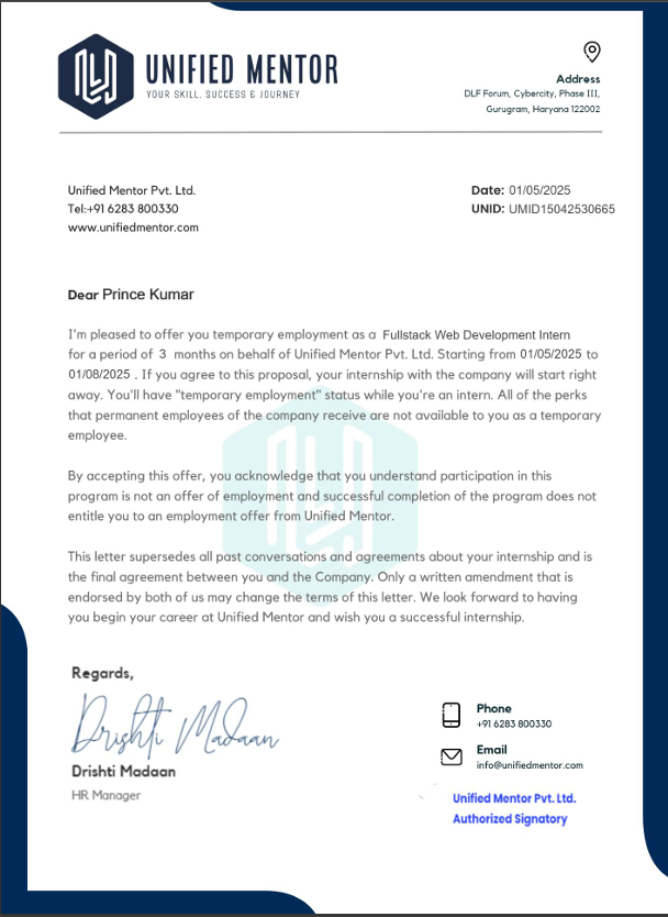 I specialize in full-stack web development using the MERN stack and have worked on multiple impactful projects such as: