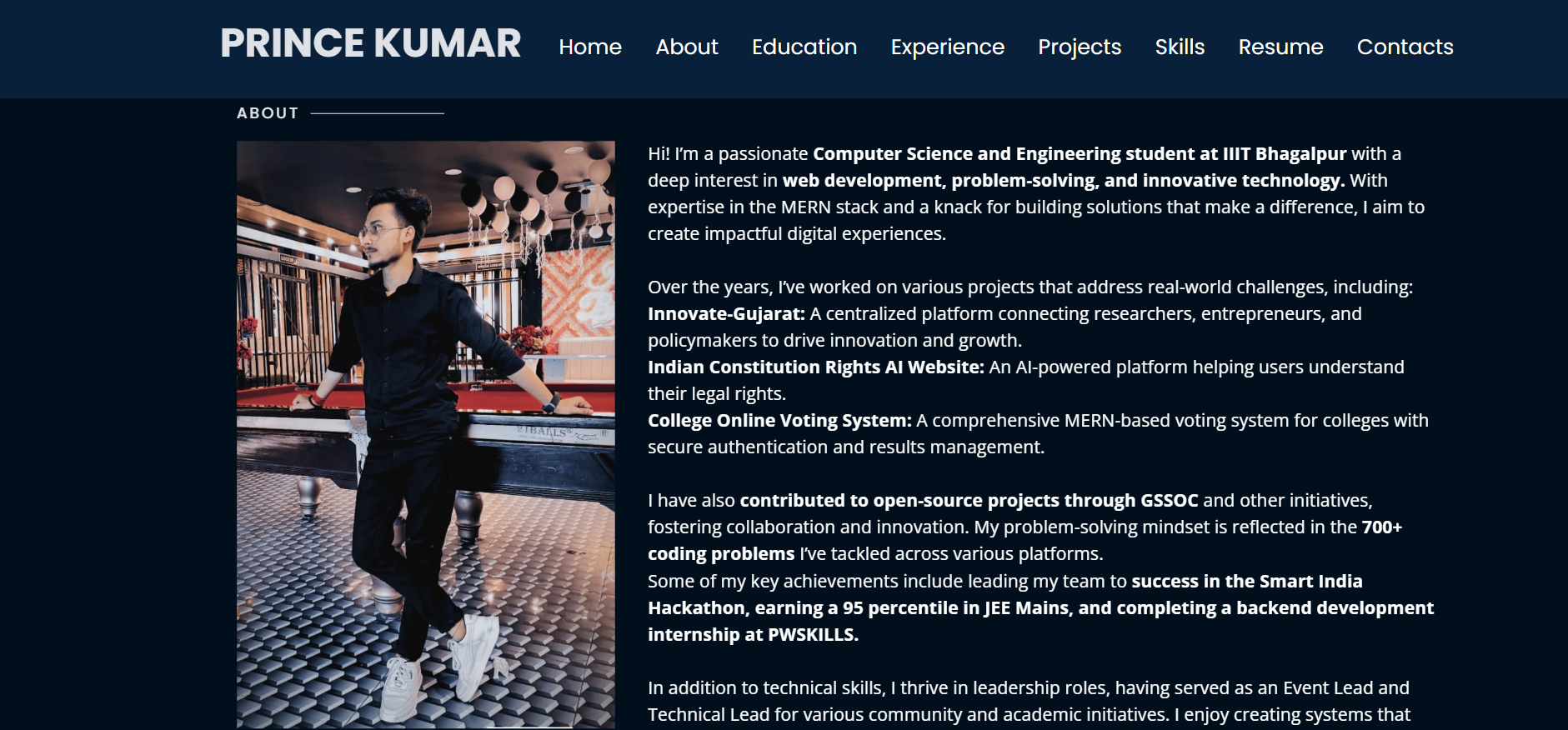 Hi! I’m Prince Kumar , a passionate Computer Science and Engineering student at IIIT Bhagalpur with a love for building technology that creates real-world impact. My curiosity and drive for innovation push me to explore the intersection of software engineering, data, and financial technology.