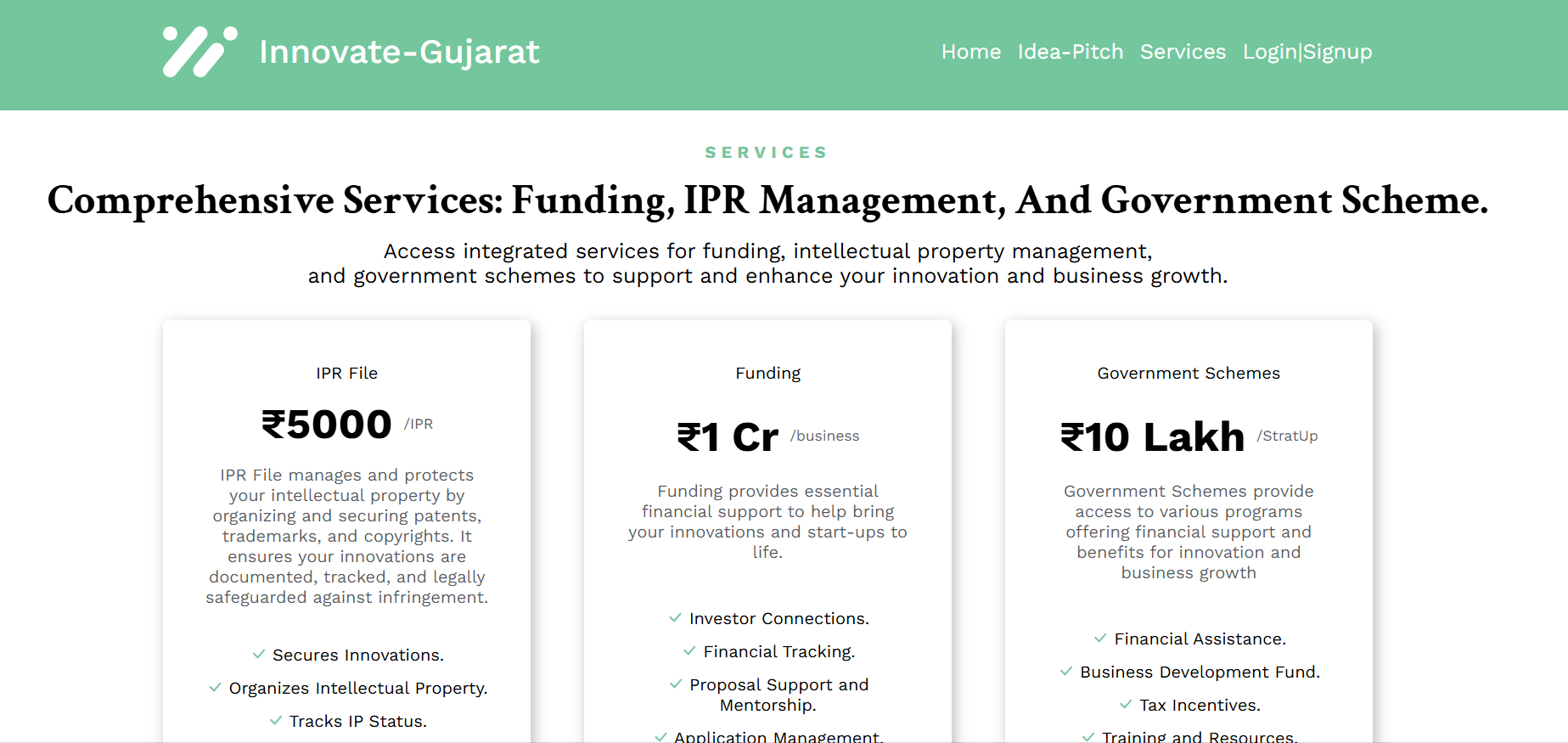 1• Innovate-Gujarat: A unified platform connecting researchers, entrepreneurs, and policymakers to promote innovation.